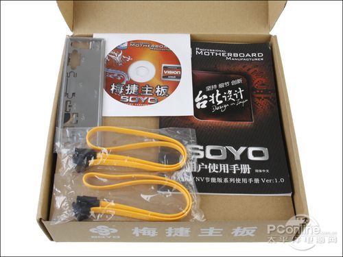 主板附送標(biāo)準(zhǔn)附件,一本用戶使用手冊(cè),一張驅(qū)動(dòng)光盤,I/O接口檔板和SATA數(shù)據(jù)線等。