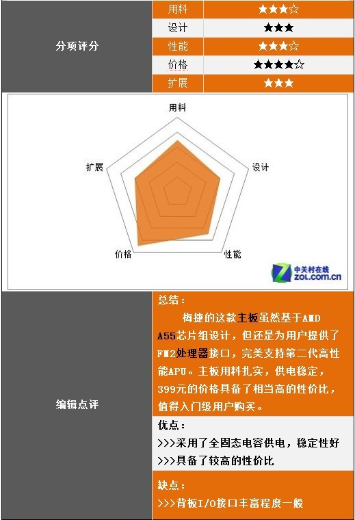 從上面的測(cè)試成績(jī)中不難發(fā)現(xiàn),梅捷的這款主板搭配第二代APU的性能表現(xiàn)還是不錯(cuò)的,不僅具備了良好的運(yùn)算能力,還能夠在720P分辨率下流暢運(yùn)行全特效的游戲。而值得一提的是,梅捷SY-F2A75X全固版的售價(jià)僅為399元,非常適合入門(mén)級(jí)用戶(hù)選用,完全能夠滿(mǎn)足日常的上網(wǎng)、辦公、影音、游戲等方面的使用需求。