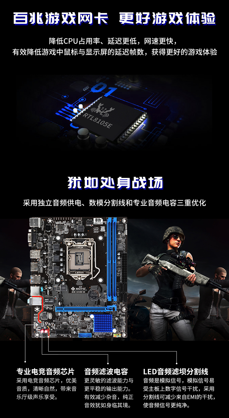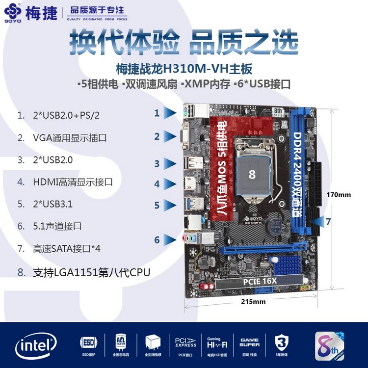 - 扎實(shí)供電,DDR4內(nèi)存,音頻分割線,音頻電容,SATA3.0,USB3.1