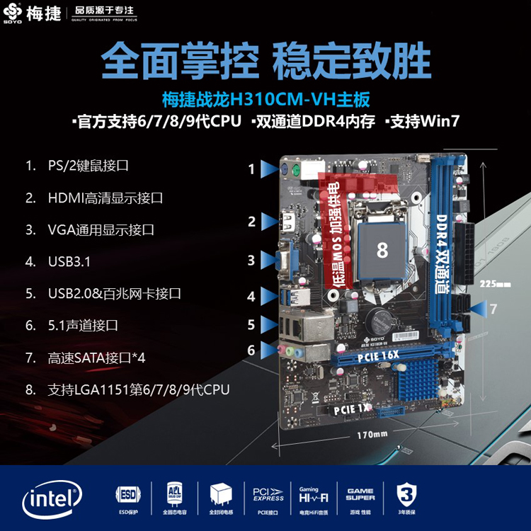 扎實供電,DDR4內(nèi)存,SATA3.0,USB3.1