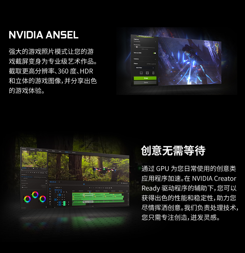 支持Simultaneous Multi-ProjectionVR圖像矯正技術(shù),VRWorks Audio虛擬現(xiàn)實音頻技術(shù),Ansel截圖功能,PhysX物理加速技術(shù),NVIDIA CUDA,PureVideo HD高清硬件解碼,動態(tài)超級分辨率,MFAA,GeForce 3D Vision,GameWorks™,G-Sync™-Ready,GameStream™-Ready,GeForce ShadowPlay™,GPU Boost™