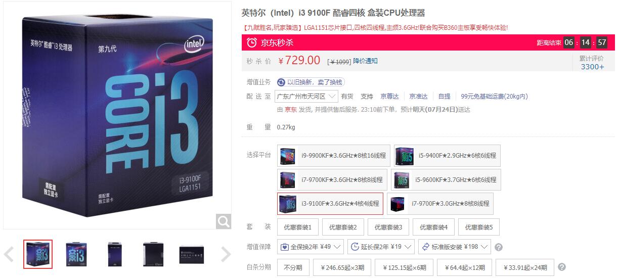 酷睿i3-9100F處理器目前JD盒裝售價僅為729元,這個價位下4核4線程還有4.2GHz的頻率,能夠充分滿足日常辦公應用。