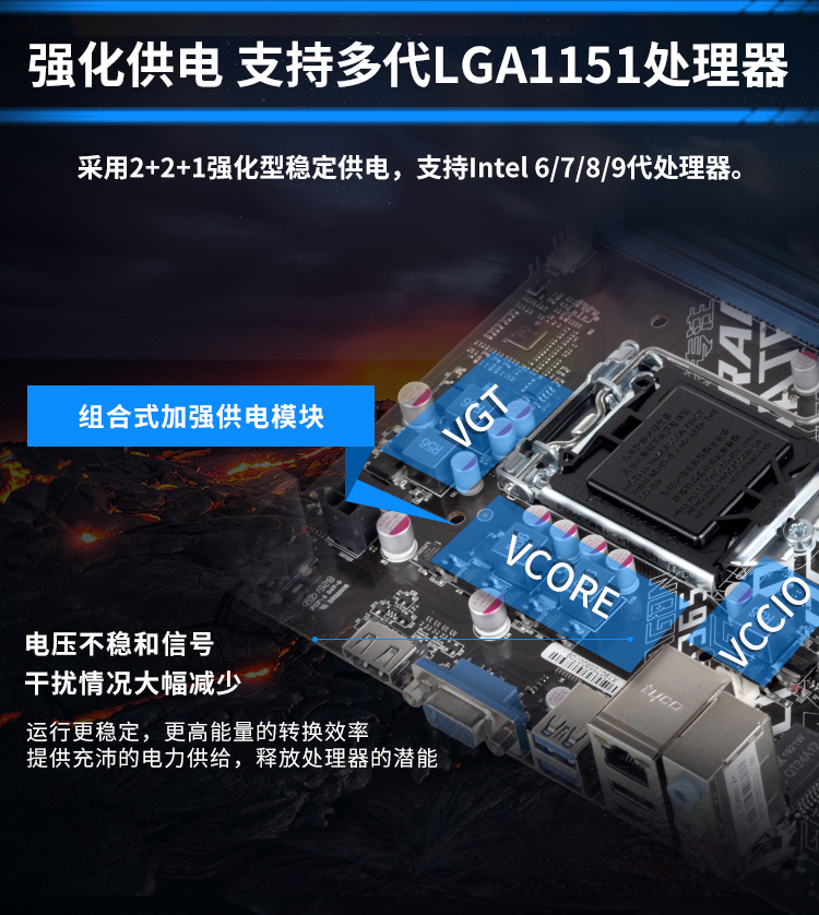 至于供電方面,狂龍B365M-VH采用3+1+1加強(qiáng)型供電,確保處理器的穩(wěn)定運(yùn)行。而且得益于B365芯片組的特殊性,主板還可以支持除了intel 9代外的6、7、8代處理器,而官方推薦使用TDP 65W以內(nèi)。