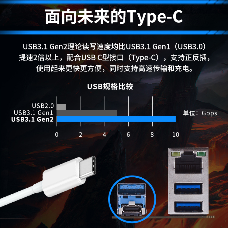 另外,主板擴(kuò)展性十足,滿足用戶對(duì)性能的擴(kuò)展需求。雙DDR4內(nèi)存插槽,帶來(lái)更快的速度和更加強(qiáng)悍的性能。支持三屏輸出,滿足玩家的各種顯示需求。同時(shí)配有USB3.1 Gen2 Type-C接口,實(shí)用方便。