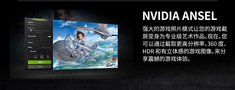 支持Simultaneous Multi-ProjectionVR圖像矯正技術(shù),VRWorks Audio虛擬現(xiàn)實音頻技術(shù),Ansel截圖功能,PhysX物理加速技術(shù),NVIDIA CUDA,PureVideo HD高清硬件解碼,動態(tài)超級分辨率,MFAA,GeForce 3D Vision,GameWorks™,G-Sync™-Ready,GameStream™-Ready,GeForce ShadowPlay™,GPU Boost™