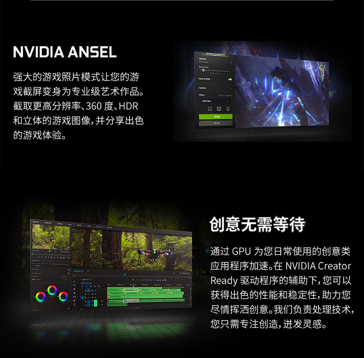 支持Simultaneous Multi-ProjectionVR圖像矯正技術(shù),VRWorks Audio虛擬現(xiàn)實音頻技術(shù),Ansel截圖功能,PhysX物理加速技術(shù),NVIDIA CUDA,PureVideo HD高清硬件解碼,動態(tài)超級分辨率,MFAA,GeForce 3D Vision,GameWorks™,G-Sync™-Ready,GameStream™-Ready,GeForce ShadowPlay™,GPU Boost™