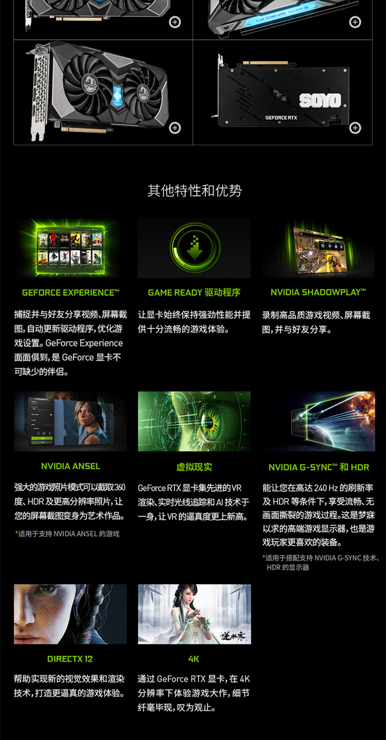 支持Simultaneous Multi-ProjectionVR圖像矯正技術(shù),VRWorks Audio虛擬現(xiàn)實(shí)音頻技術(shù),Ansel截圖功能,PhysX物理加速技術(shù),NVIDIA CUDA,NVIDIA REFLEX,PureVideo HD高清硬件解碼,動(dòng)態(tài)超級(jí)分辨率,MFAA,GeForce 3D Vision,GameWorks™,G-Sync™-Ready,GameStream™-Ready,GeForce ShadowPlay™,GPU Boost™